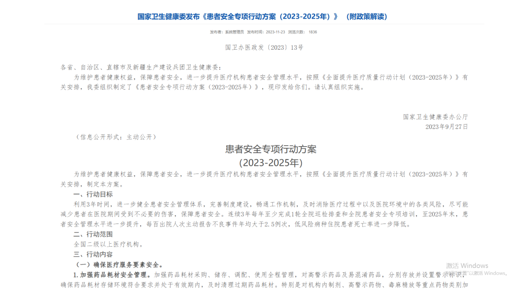 2023年末,国家卫生健康委印发了《患者安全专项行动方案(2023-2025年)》(以下简称《方案》),标志着“患者安全”已从日常工作的基本要求,上升为国家层面的顶层设计和战略目标。对于全国二级以上医疗机构而言,这不仅是一份行动指南,更是一场关乎高质量发展的“必答题”。